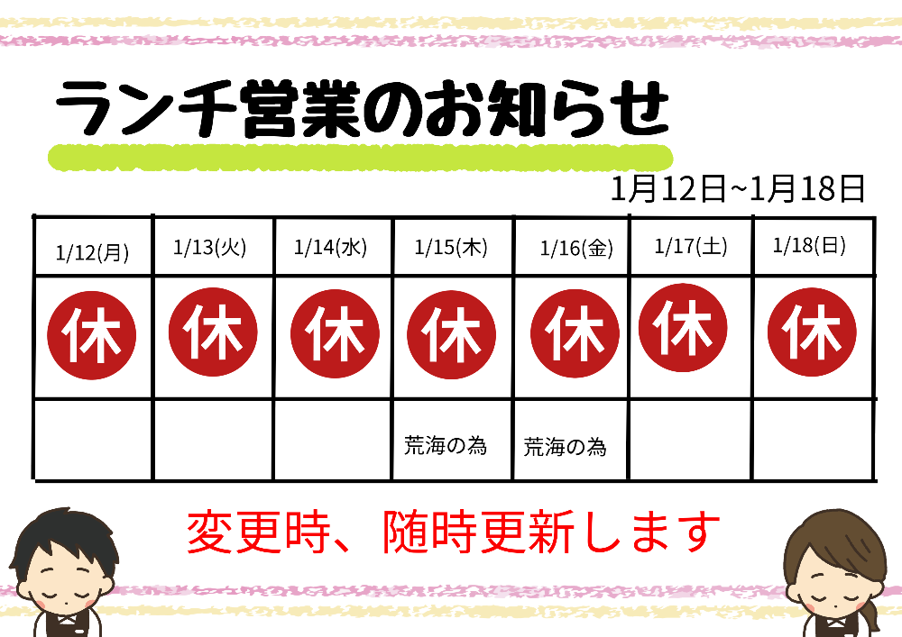 | 11:00~14:00 | ○ | ○ | ○ | ○ | ※ | ※ | ※ |
