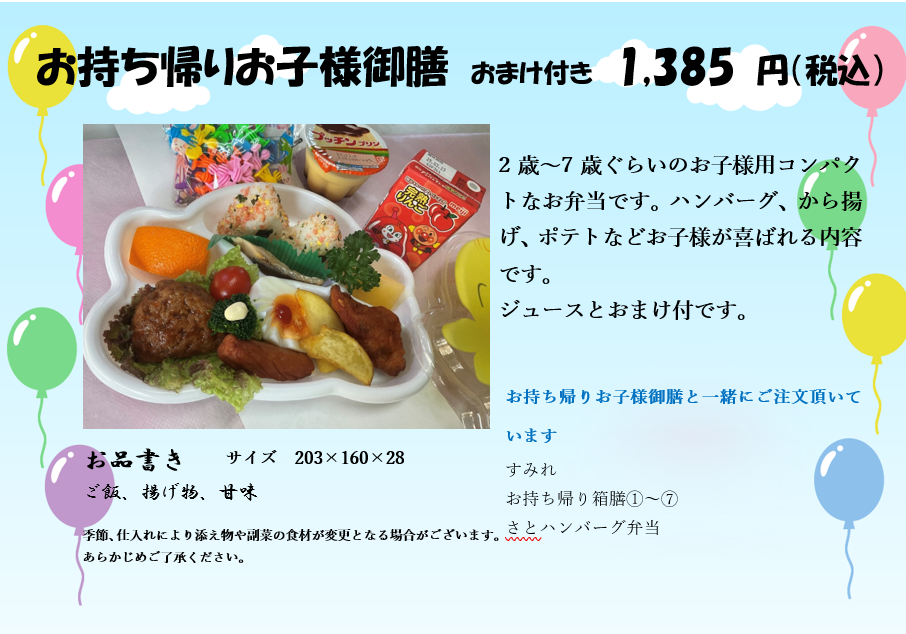 テイクアウト商品ごとの説明、器の大きさなどご注文の参考にしてください。